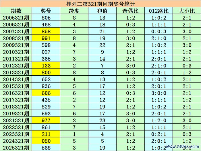 上期回想:陈设三第2025321期奖号为568,组选类型为组六,奖号大小比为3:0,012路比为1:0:2,奇偶比为1:2。