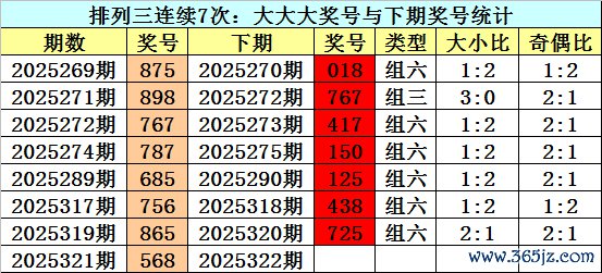 上期追想:罗列三2025321期奖号为:568。类型:组六,奇偶:奇偶偶,大小:大大大。